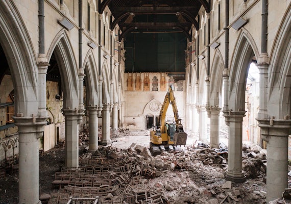 The digger has been working inside the Cathedral nave for the past 41 days and has successfully removed 247.92 tonnes of material, including debris, masonry and guano, a significant biohazard, and heritage fabric.