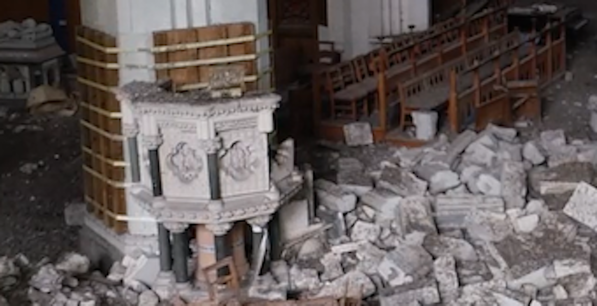 The damage to the pulpit is most critical on its southern side and directly associated with the fall of the stone cladding from the chancel arch. Once it is safe to enter the Cathedral work will begin to safely deconstruct the pulpit and retrieve the remaining panels to conserve them.